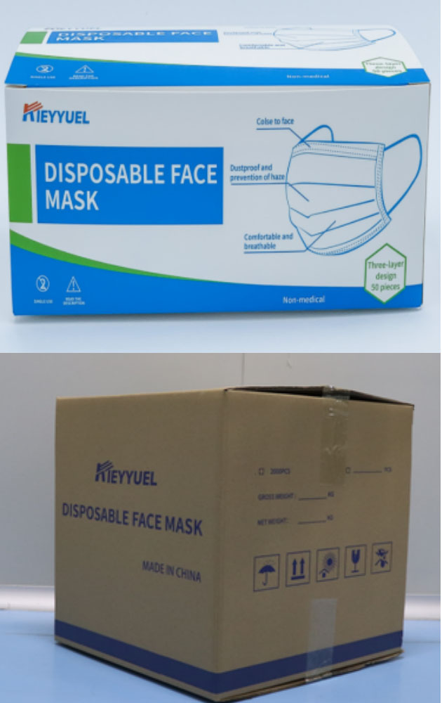 Packaging of નિકાલજોગ ચહેરો માસ્ક: